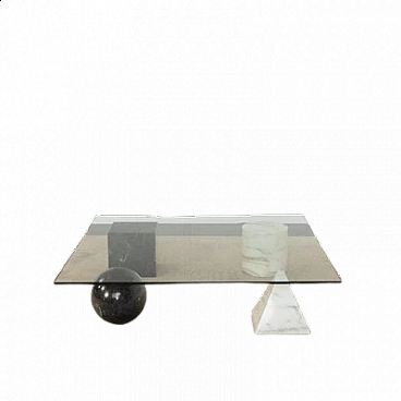 Metafora coffee table with glass top and geometrically shaped feet in Carrara marble by Casigliani for Gianni Vignelli, 1980s.