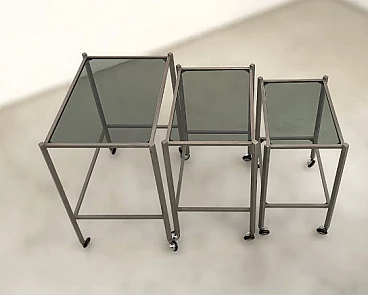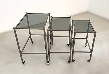 3 Nesting tables in metal and smoked glass attributed to Saporiti, 1970s