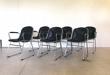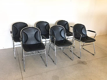 6 steel and skai chairs, 1970s
