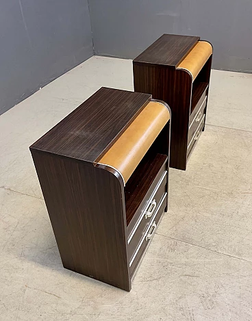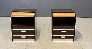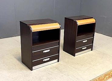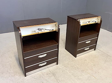 Pair of luminous bedside tables in rosewood and aluminium, 1970s