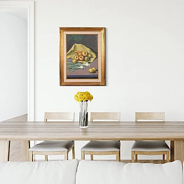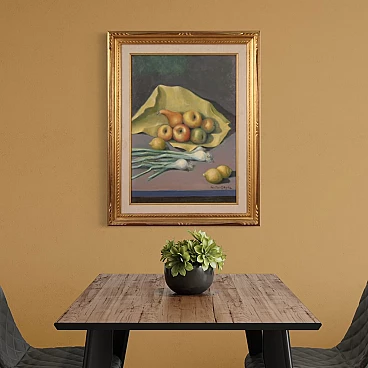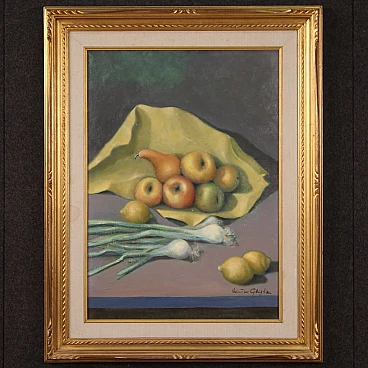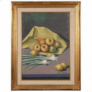 Valentino Ghiglia, still life with fruit and vegetables, oil painting on canvas, 1940s