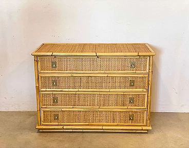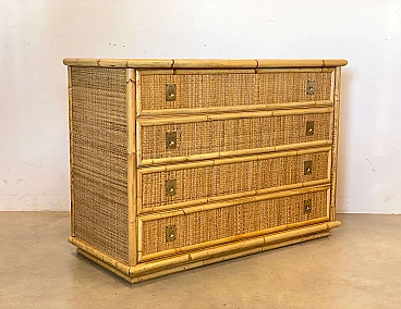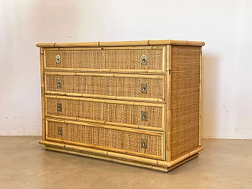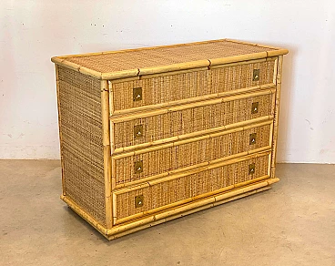 Wicker and bamboo chest of drawers with brass handles by Dal Vera, 1970s