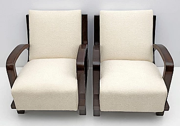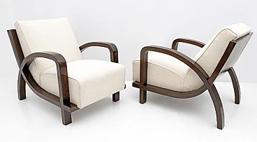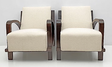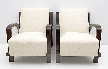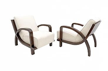 Pair of Art Deco walnut and bouclé fabric armchairs, 1930s