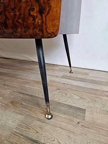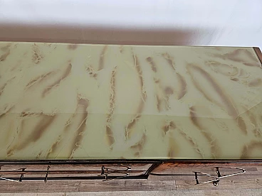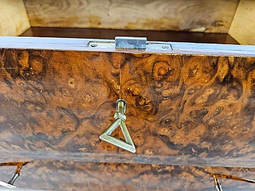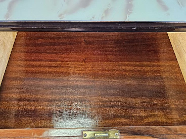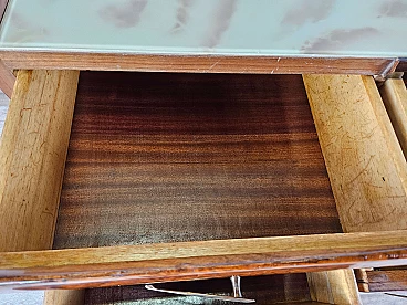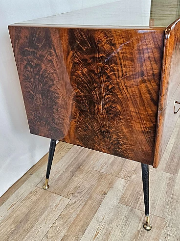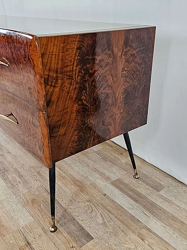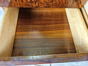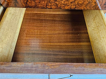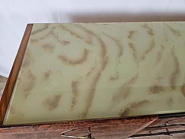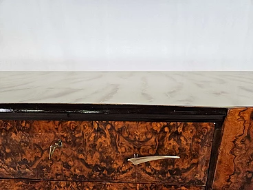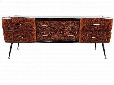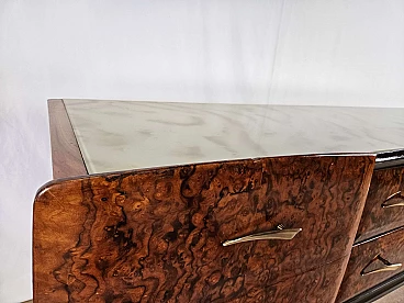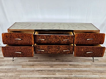 Mahogany-root chest of drawers with glass top, 1950s