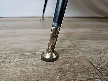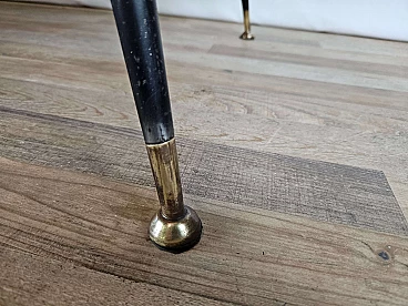 Mahogany-root chest of drawers with glass top, 1950s. Particular worked and decorated glass top, iron spiked legs with brass tips, claw handles. High quality and workmanship. It has been polished with oil and shellac. The central lock is working and is the original one of the period. Normal marks due to age and use.