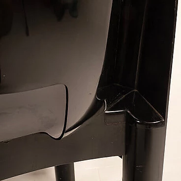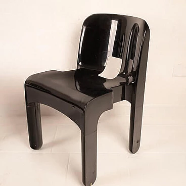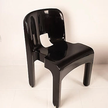 Pair of Universale 4869 chairs by Joe Colombo for Kartell, 1960s (designed in 1967). This chair is characterized by a minimalist and elegant design that has made it a cult object in the world of furniture design. It has an essential and timeless shape, with a comfortable but also elegant curved seat and backrest. The choice of black color adds a touch of sophistication and fits well with a variety of settings and furnishing styles. The material used is polypropylene, a lightweight and durable plastic that was at the forefront of 1960s design. This material allows the chair to be used both indoors and outdoors. It is called "Universale" because of its ability to adapt to different situations and environments. It was designed to be versatile, suitable both for use in residential environments as a dining or study chair, and for public environments such as waiting rooms and offices. Joe Colombo's design has been awarded and recognized in the design world and the Universale chair is one of his best-known masterpieces.