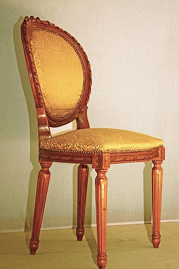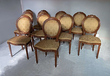 10 Solid walnut chairs in Louis XVI style with turned legs, early 20th century