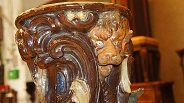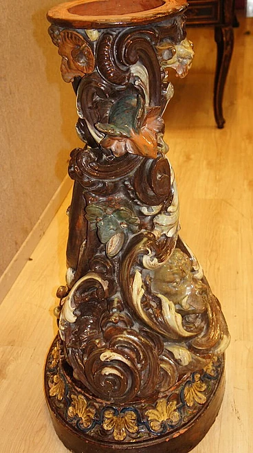 Antique Glazed and painted terracotta flower stand, Italy, 1900s