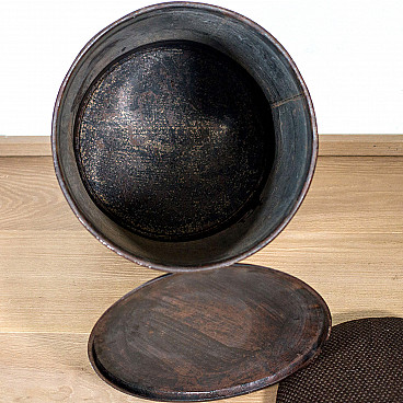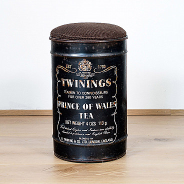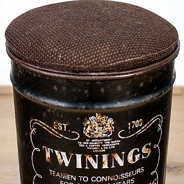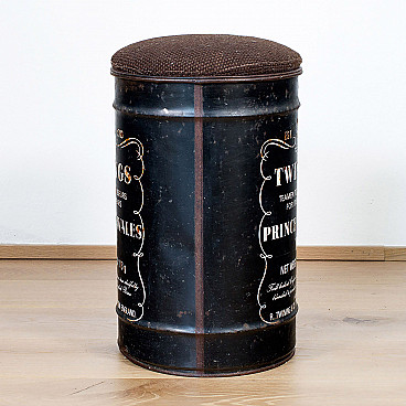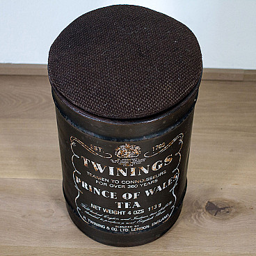 Industrial style stool made as a Twinings tea barrel, 70s or 80s