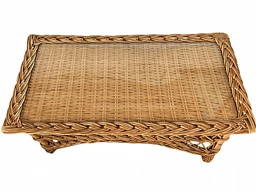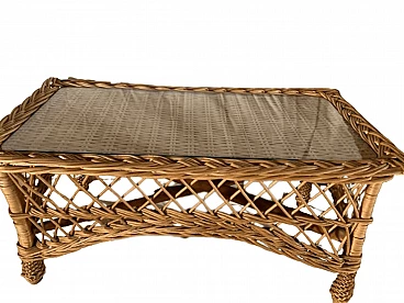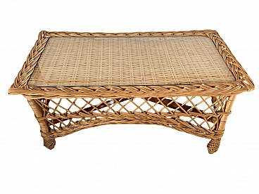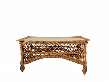 Rectangular bamboo and rattan coffee table with glass top, 1970s