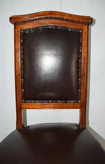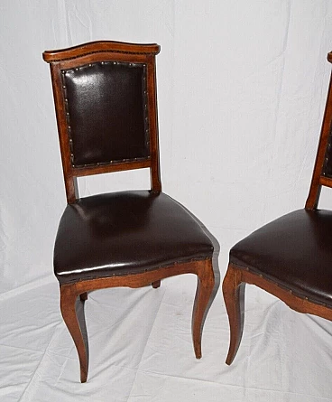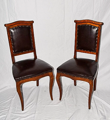 Pair of Direttorio chairs in walnut with brown leather upholstery, 19th century
