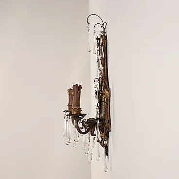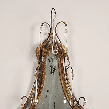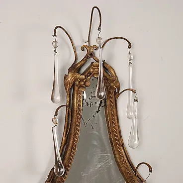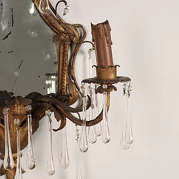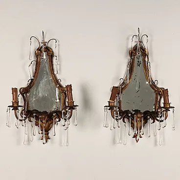 Pair of metal and glass wall lights with mirror, early 20th century