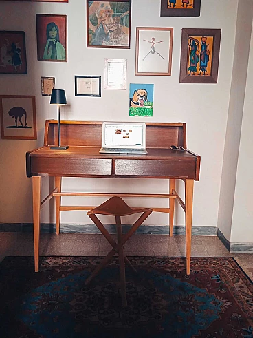 Wood writing desk with drawers, 1960s