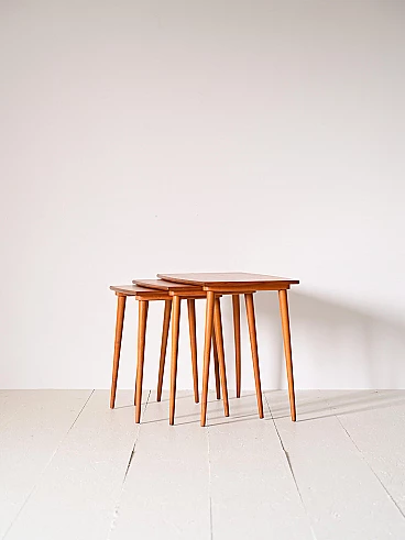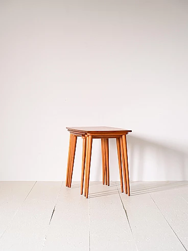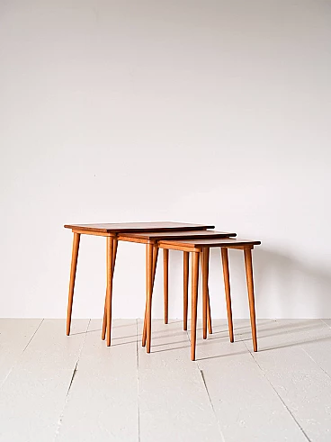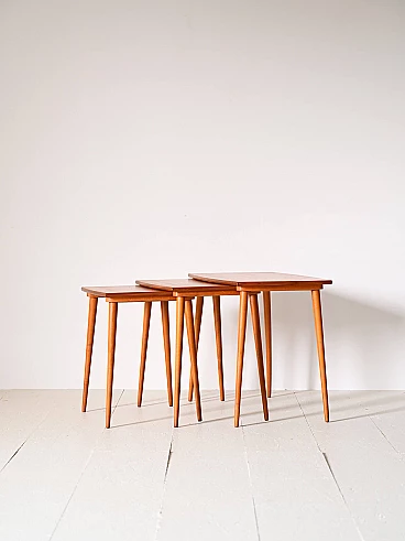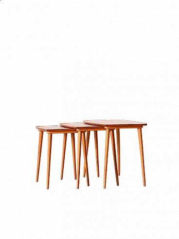 3 Scandinavian nesting tables in teak and oak, 1960s