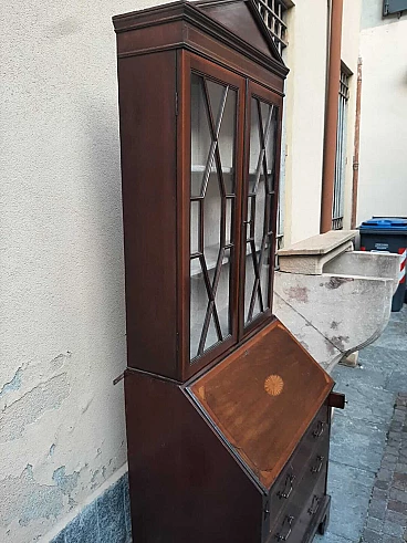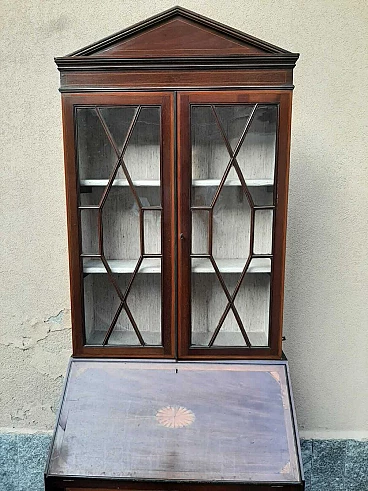 English mahogany flap desk with display case, early 20th century