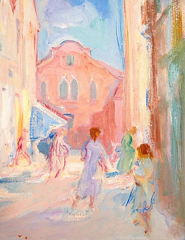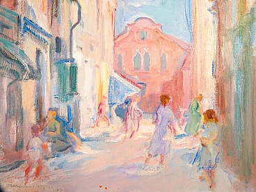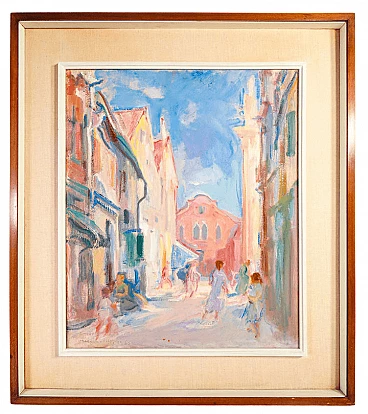 Mario Micheletti, urban landscape, oil painting on panel, 1960