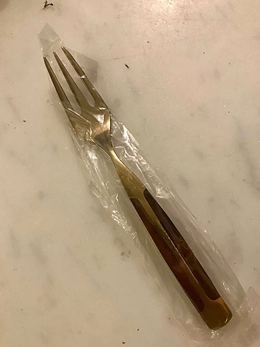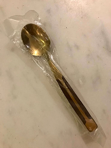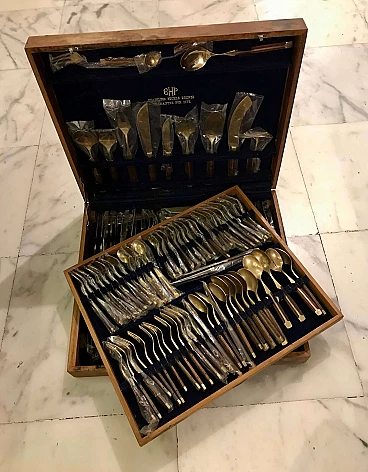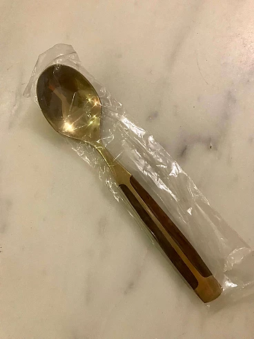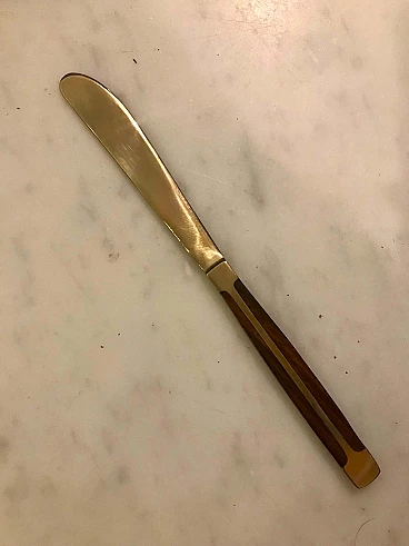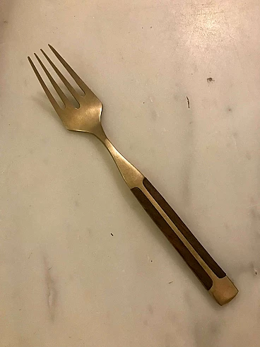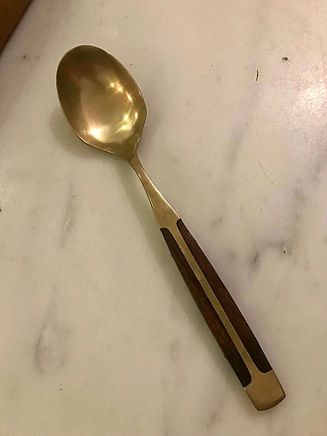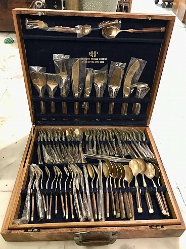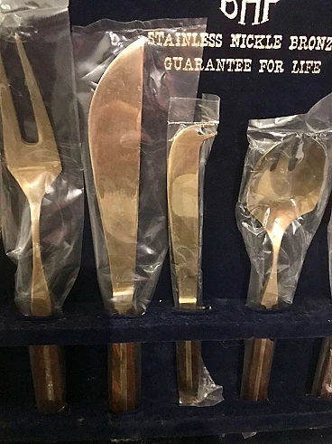Brass-plated steel and teak cutlery set in wooden case, 1950s