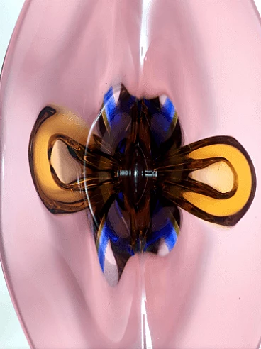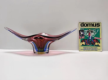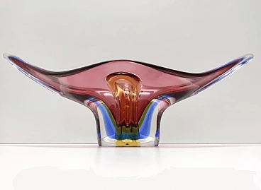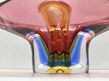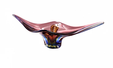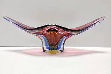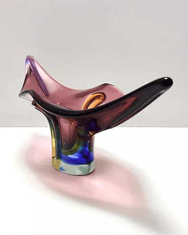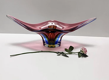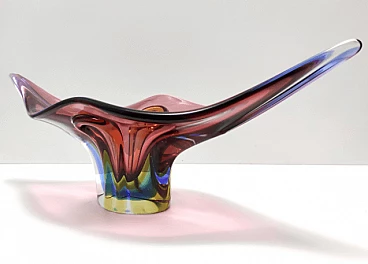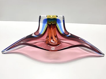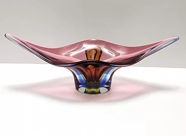 Centerpiece/bowl/pocket emptier in submerged Murano glass attributed to Flavio Poli, 1950s-60s. Glass object in six colors modeled by hand. That's pretty rare, considering its size. It may show slight traces of use but can be considered in perfect original condition.