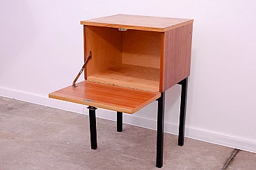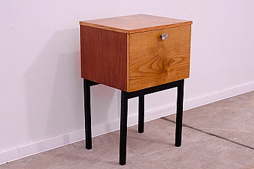 This elegant bedside table was produced by UP Závody in the former Czechoslovakia in the 1970s. It is made of ash, maple and plywood. It has iron legs. It is in excellent vintage condition, with slight signs of age and use. UP Závody was one of the most important Czechoslovak furniture companies, best known for the work of the world-renowned designer Jindřich Halabala. Height: 70 cm, width: 43 cm, depth: 42 cm.