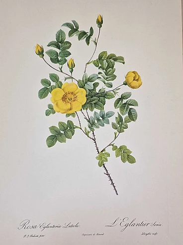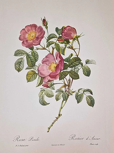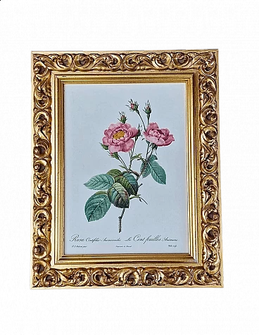 Pierre-Joseph Redouté, Rose, engraving with gold frame, 1959
