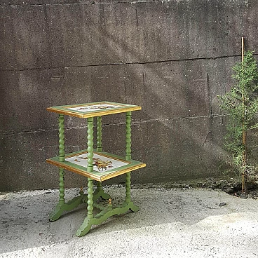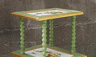 Lacquered and gilded wood side table with ceramic shelves, 19th century