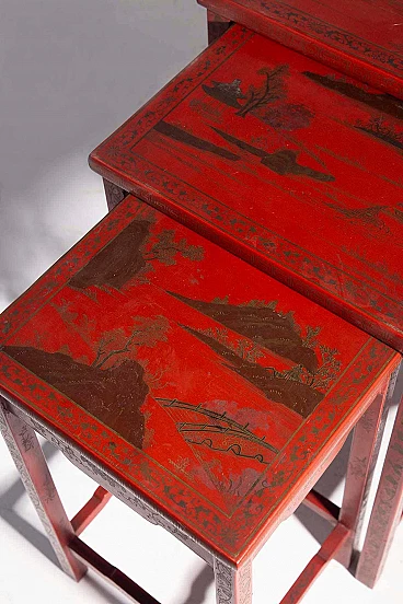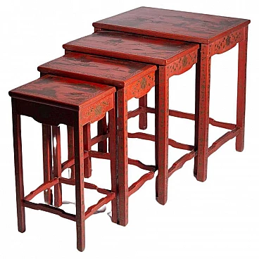 In conclusion, your quartet of red lacquer Chinese nesting tables is a testament to the enduring appeal of Chinese craftsmanship and the captivating beauty of nature. These tables transcend time, bridging the gap between centuries, and invite you to immerse yourself in the art and charm of China. They are more than just furniture: they are a journey into history and culture, a reflection of timeless beauty that transcends boundaries and eras.