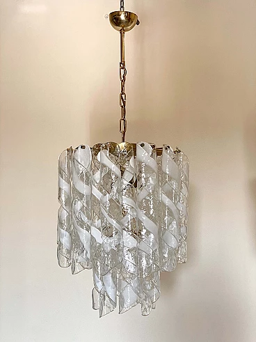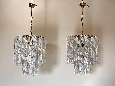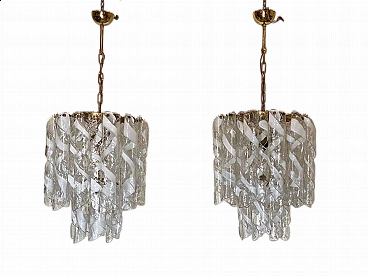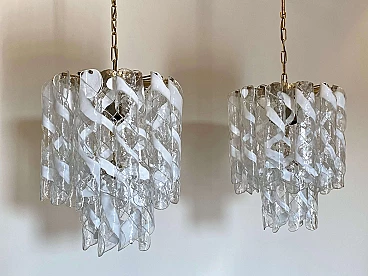 Pair of gilded metal and Murano glass chandeliers, 1980s