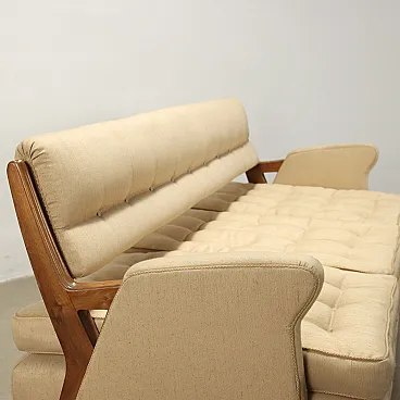 Three-seater sofa with wooden frame and upholstery in capitonné fabric, 1960s
