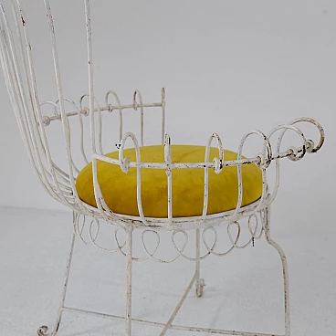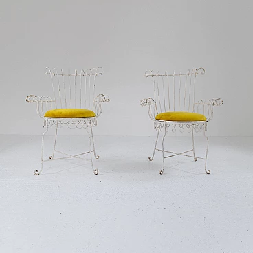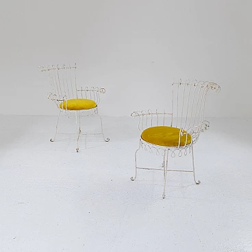 Pair of iron and yellow velvet chairs, 1950s