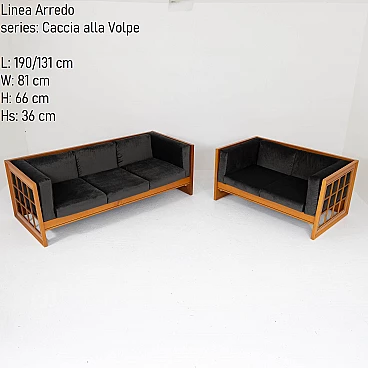 Pair of Caccia alla Volpe sofas by Linea Arredo, 1970s