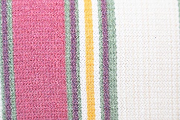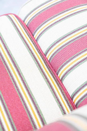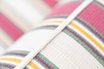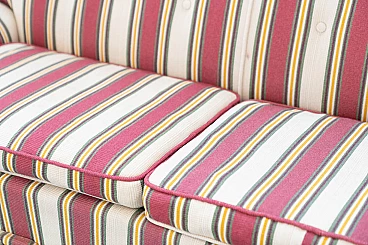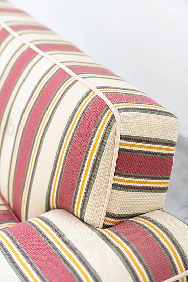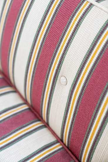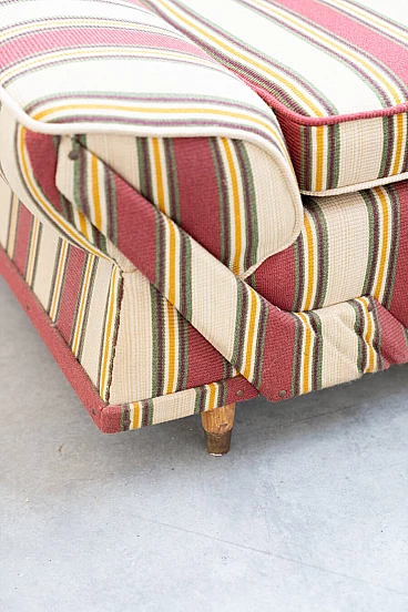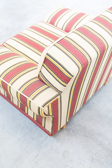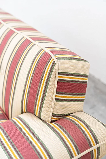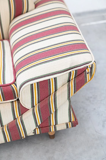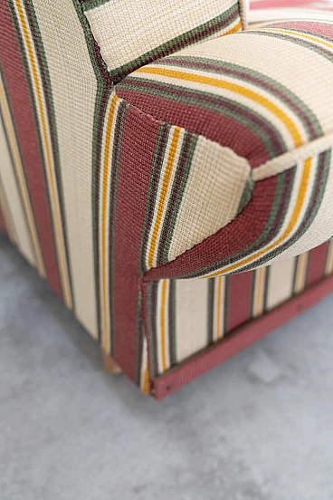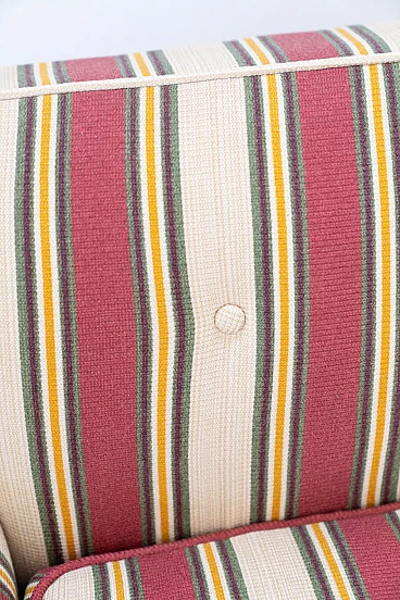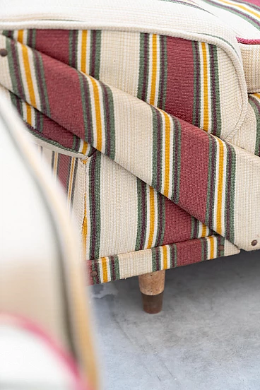 Striped fabric sofa and armchair with wooden frame, 1970s