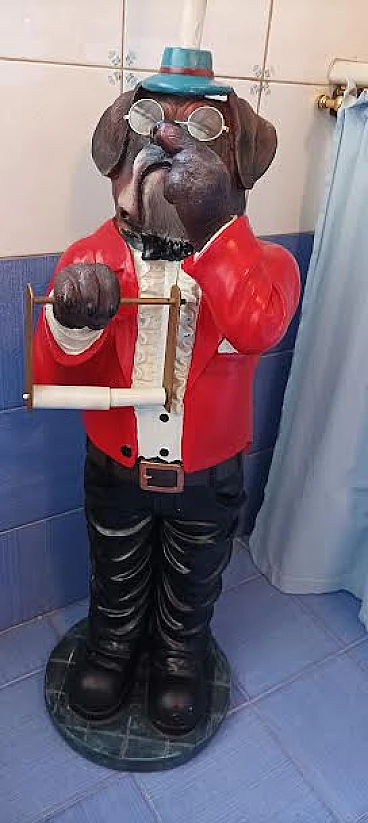 Resin boxer dog-shaped toilet paper holder, 1980s