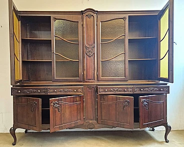 Dark stained national walnut sideboard with showcase, 1960s
