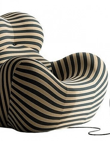 UP 50 armchair and pouf by Gaetano Pesce for B&B Italia. In 1969 the well-known designer Gaetano Pesce caused a sensation with a red armchair that more or less faithfully reproduced the shape of a woman; for the 50th anniversary, this splendid, yet unusual, piece of furniture has been re-proposed with new color trends.