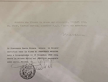 Bronze sculpture "Flora" made by Francesco Messina in 1984. Brown patina. Authentic specimen.