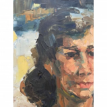 Portrait of a woman in a blue dress, oil on canvas, 1940s