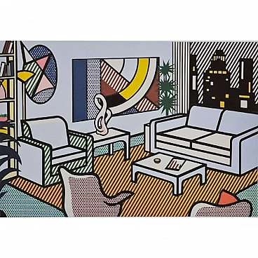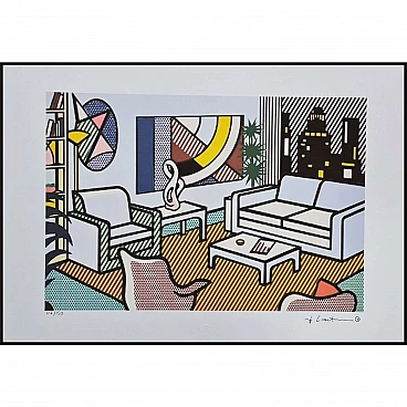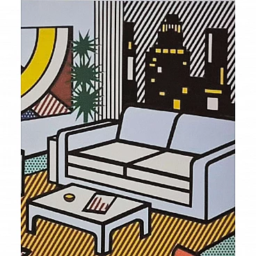 Roy Lichtenstein, Interior with skyline, lithograph, 1980s