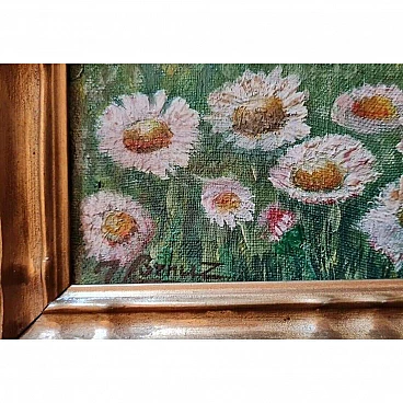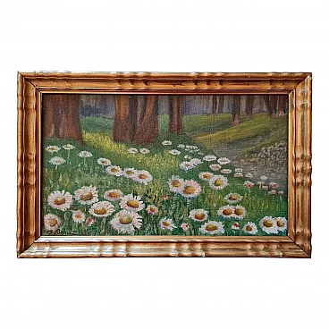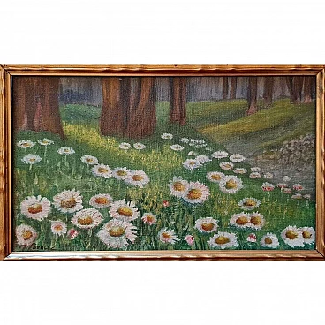 J. Benuz, Field of daisies, oil on panel, 1940s