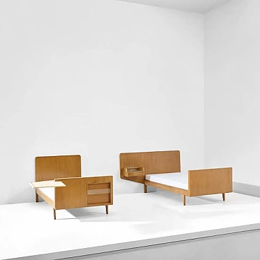 Pair of single beds by Gio Ponti, 1950s. Dimensions bed one: width 100 cm, depth 209 cm, height 95 cm. Bed two dimensions: width 138 cm, depth 245 cm, height 95 cm.