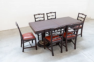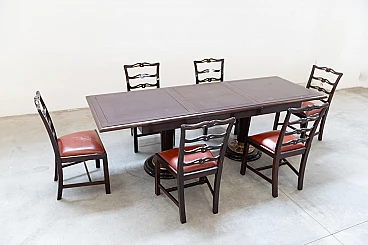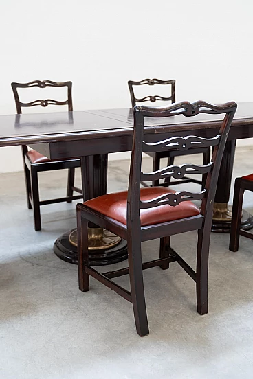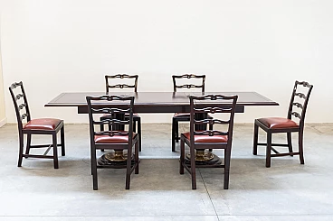 6 Mahogany chairs and table in naval style, 1980s