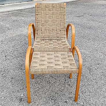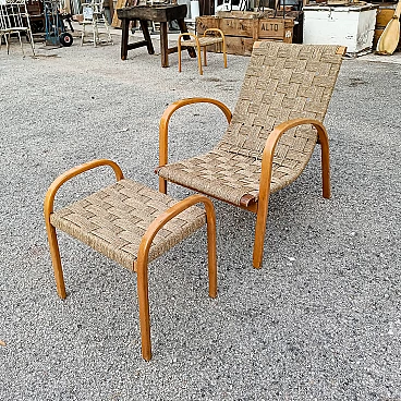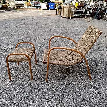 Art Deco wood and rope armchair and footstool