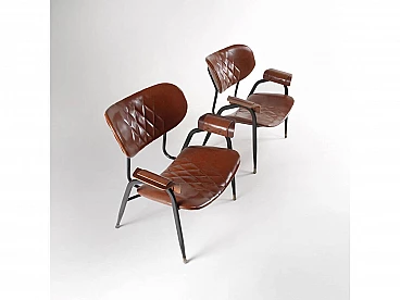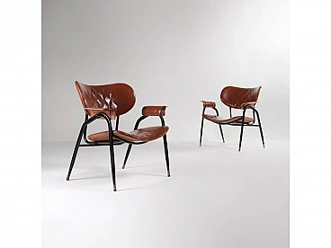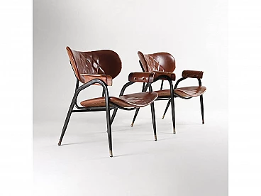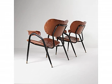 Pair of metal and leatherette armchairs by Gastone Rinaldi for Rima, 1950s
