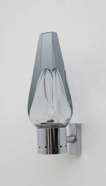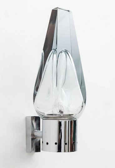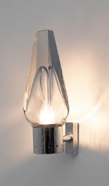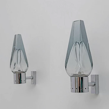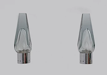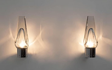 Pair of chromed brass and glass wall lights by Flavio Poli for Seguso, 1960s