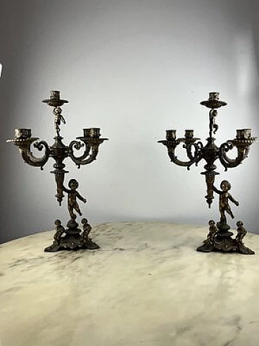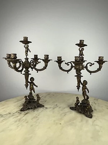 Pair of five-flame bronze candelabra, 1960s