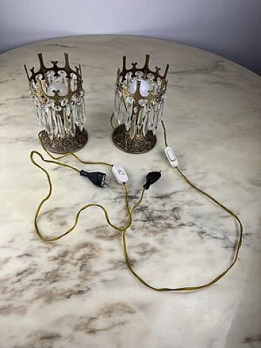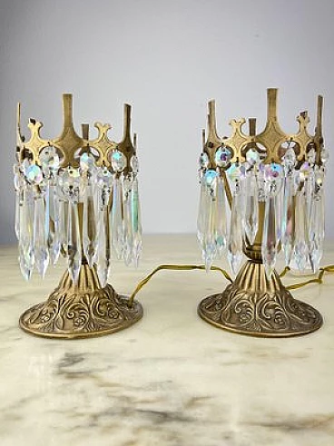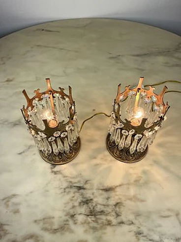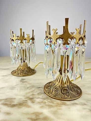 Pair of crystal and bronze bedside lamps, 1960s