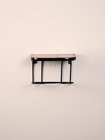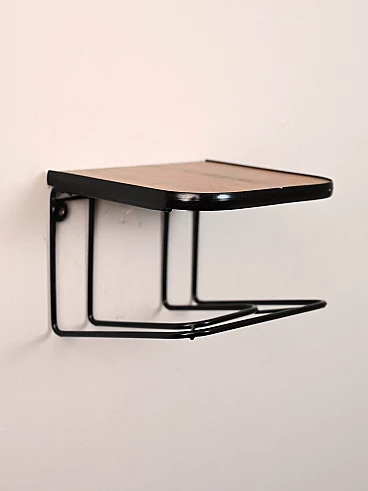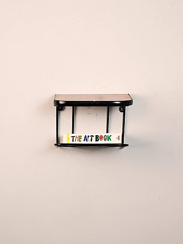 Scandinavian black metal hanging bedside table with teak top, 1960s