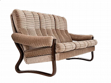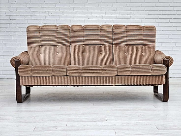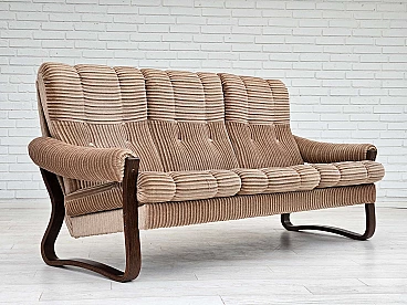 Danish three-seater corduroy and bentwood sofa, 1970s