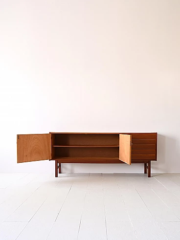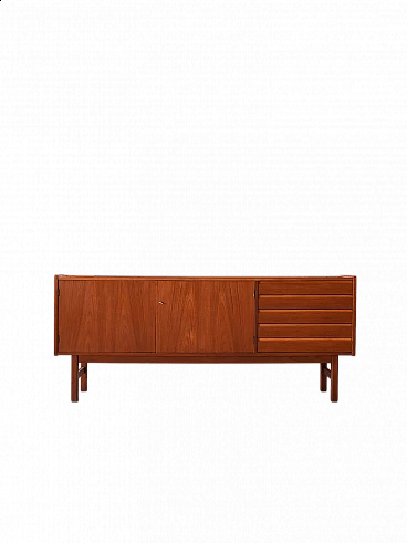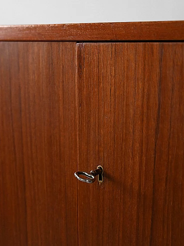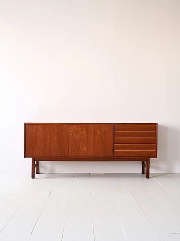 Made up of a structure with clean and minimal lines, it has 5 drawers with hidden handles and a storage compartment closed by hinged doors with lock. Inside the compartment there is a shelf.