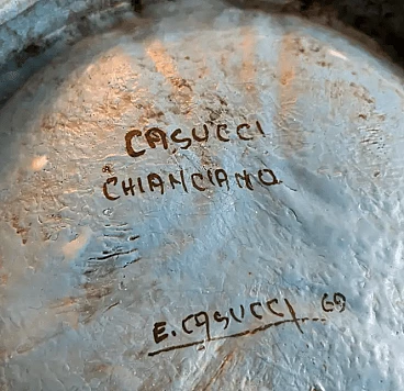 Etruscan-inspired blue and yellow ceramic ashtray by Casucci, 1960s