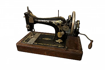 Original Singer sewing machine with wooden base, complete with its cover to close and transport it.